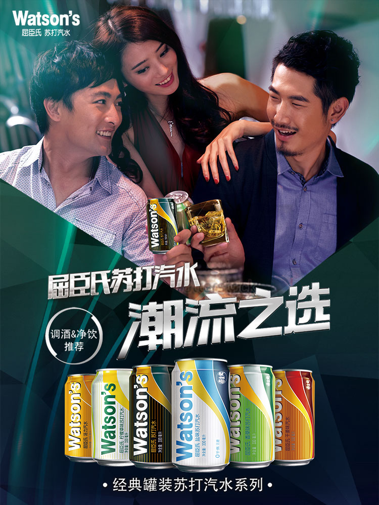 屈臣氏(Watsons)苏打汽水330ml*24罐 整箱装 苏打水汽水饮料