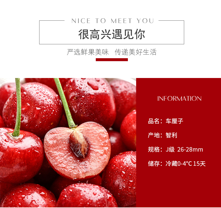 智利进口车厘子J级 1磅装 果径约26-28mm 新鲜水果