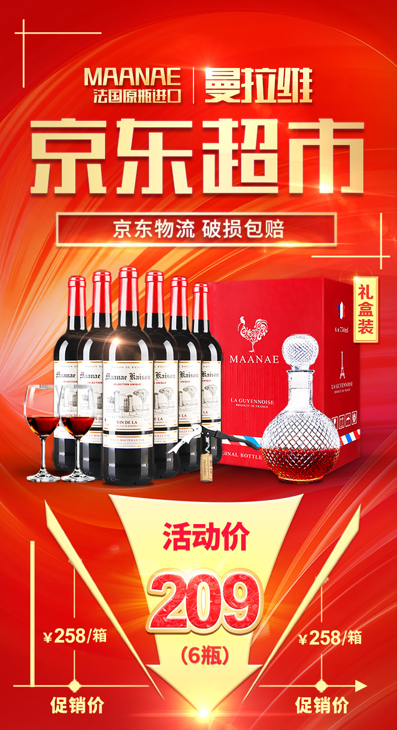 法国原瓶进口红酒凯旋干红葡萄酒礼盒750ml整箱6支装