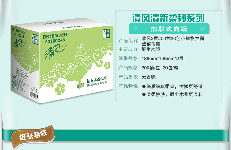 清风(APP)抽纸 柔韧2层200抽软抽*20包纸巾(新老包装交替发货)(整箱售卖)